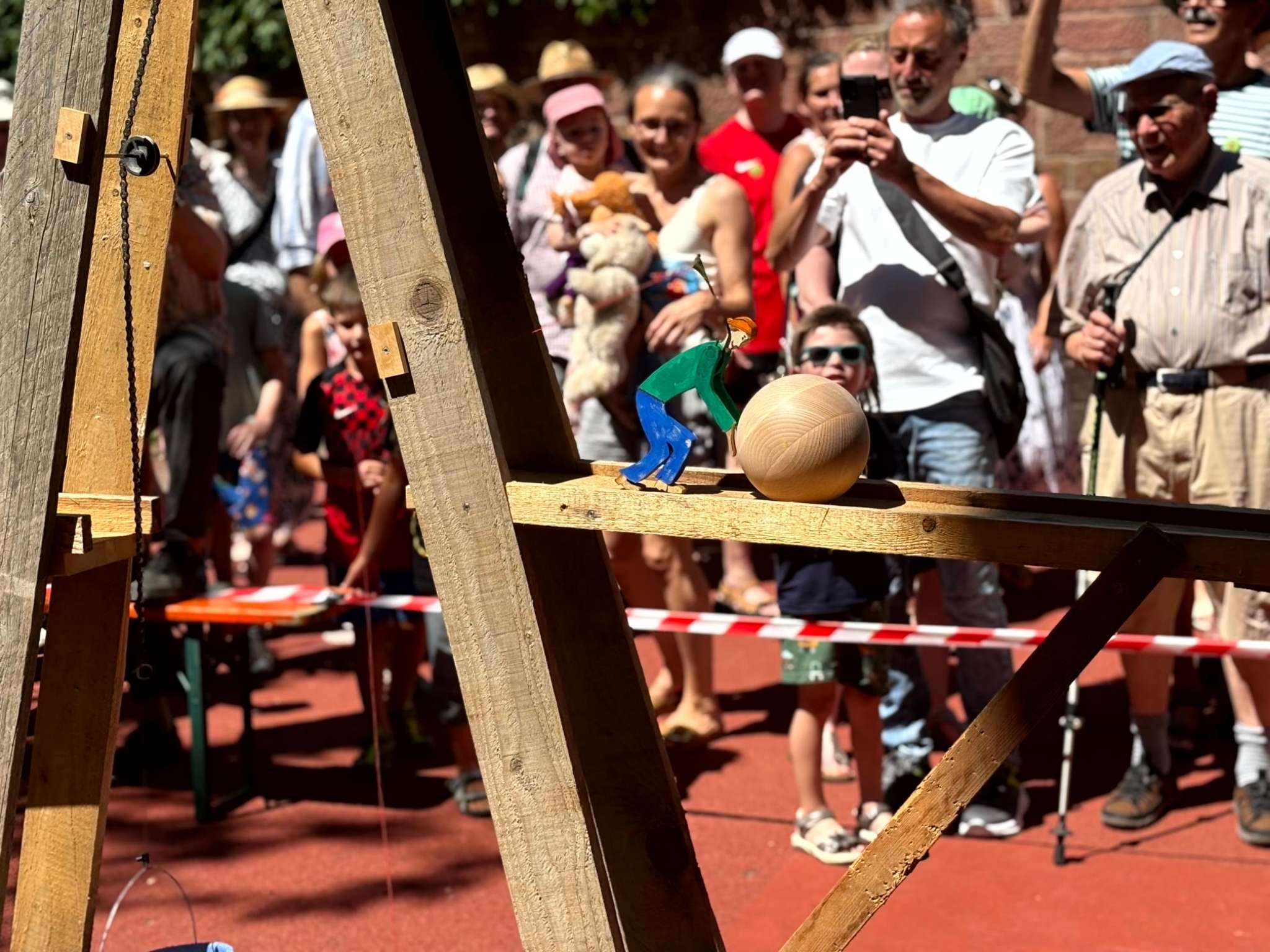 Ein besonderes Highlight war die 50 Meter lange Klangkugelbahn, die von 150 engagierten Akteurinnen und Akteuren gebaut worden war. „Wusch“ und „Ding“ machte die Kugel auf ihrer rund fünfminütigen Fahrt. Die Erbauer wurden mit viel Applaus belohnt.